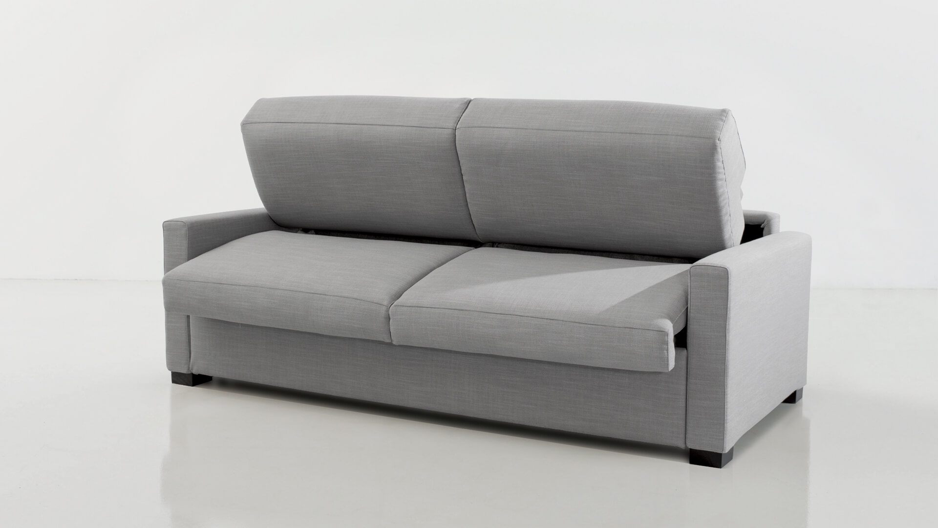 Divaniletto.Piede in legno tinta wengé.Rete letto a maglia elettrosaldata.Cuscini seduta e cuscini schienale in “POLIDAC”.Non necessita rimozione dei cuscini per l’apertura del letto.Sfoderabilità totale.Materasso a molle alto cm.16/18